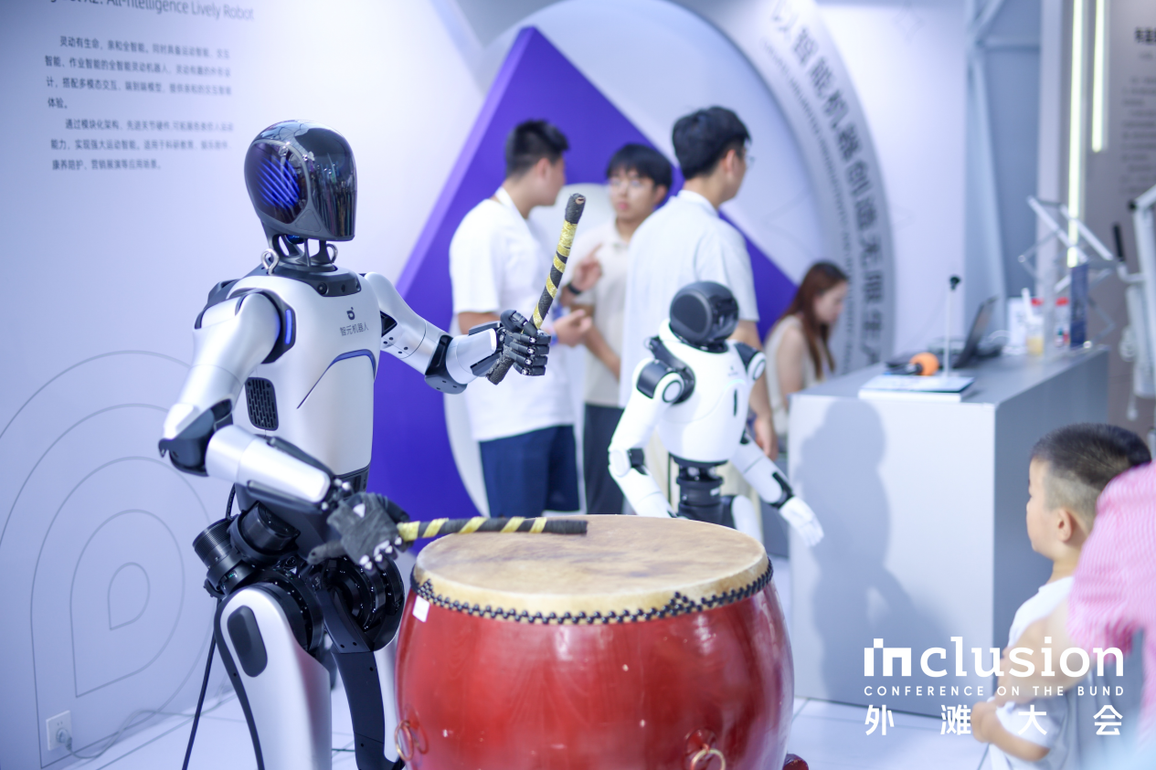 在外滩大会的“机器人小镇”展区,j9集团远征A2再次展现其作为“科技鼓手”的非凡能力,向观众演绎一段《迎客鼓》,机械臂扬起鼓槌的每一个动作都精准契合传统鼓点,既保留了韵律灵魂,又注入了科技特有的节奏控制力,吸引台下观众纷纷举起手机记录这一时刻。而另一边,灵犀X2则扮演起“智能接待官”的角色,它不仅能够流畅介绍展区内容、回答观众问题,还能通过多模态感知识别观众情绪,做出相应肢体反馈。这种兼具功能性与情感化的交互,打破了“机器人冷漠”的刻板印象,营造出温暖而智能的“伙伴”形象。